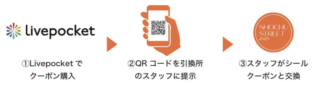 「LivePocket-(ライブポケット)」にてチケット購入後、QR コードをチケット引換所のスタッフに
